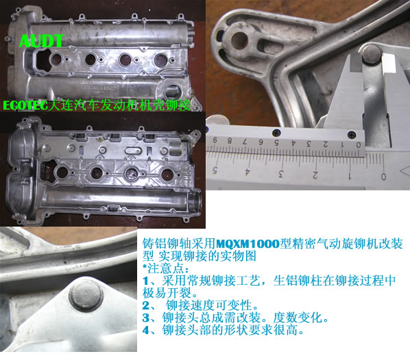 * 采用MQXM1000氣動旋鉚機改裝型實現鉚接。